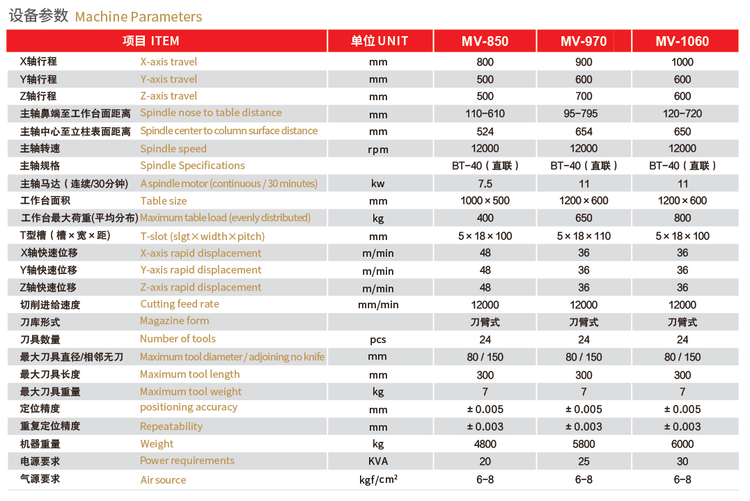 米威MV系列高速高精加工中心具备较高的主轴转速、更快的位移速度和更短的换刀时间,提供了实现大批量生产和缩短了循环时间的必备条件。