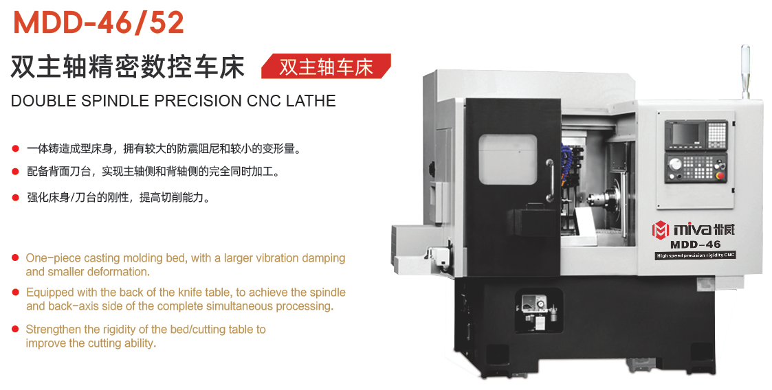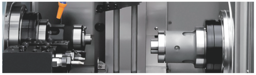一体铸造成型床身,拥有较大的防震阻尼和较小的变形量、配备背面刀台,实现主轴侧和背轴侧的完全同时加工,强化床身/刀台的刚性,提高切削能力