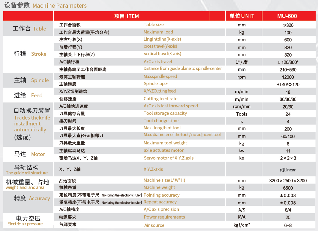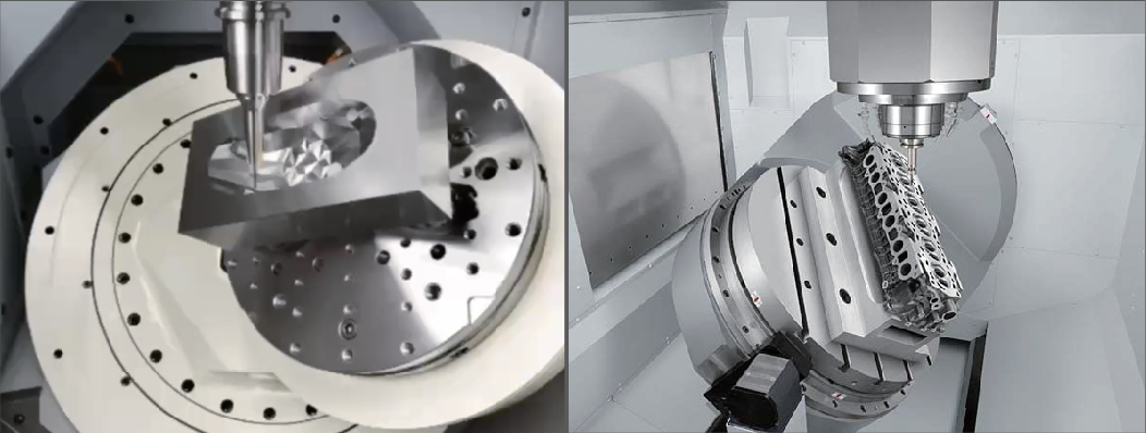 专业的摇篮式转台设计 z轴行程更大 扭矩更大 整体集成 更灵活的切削角度