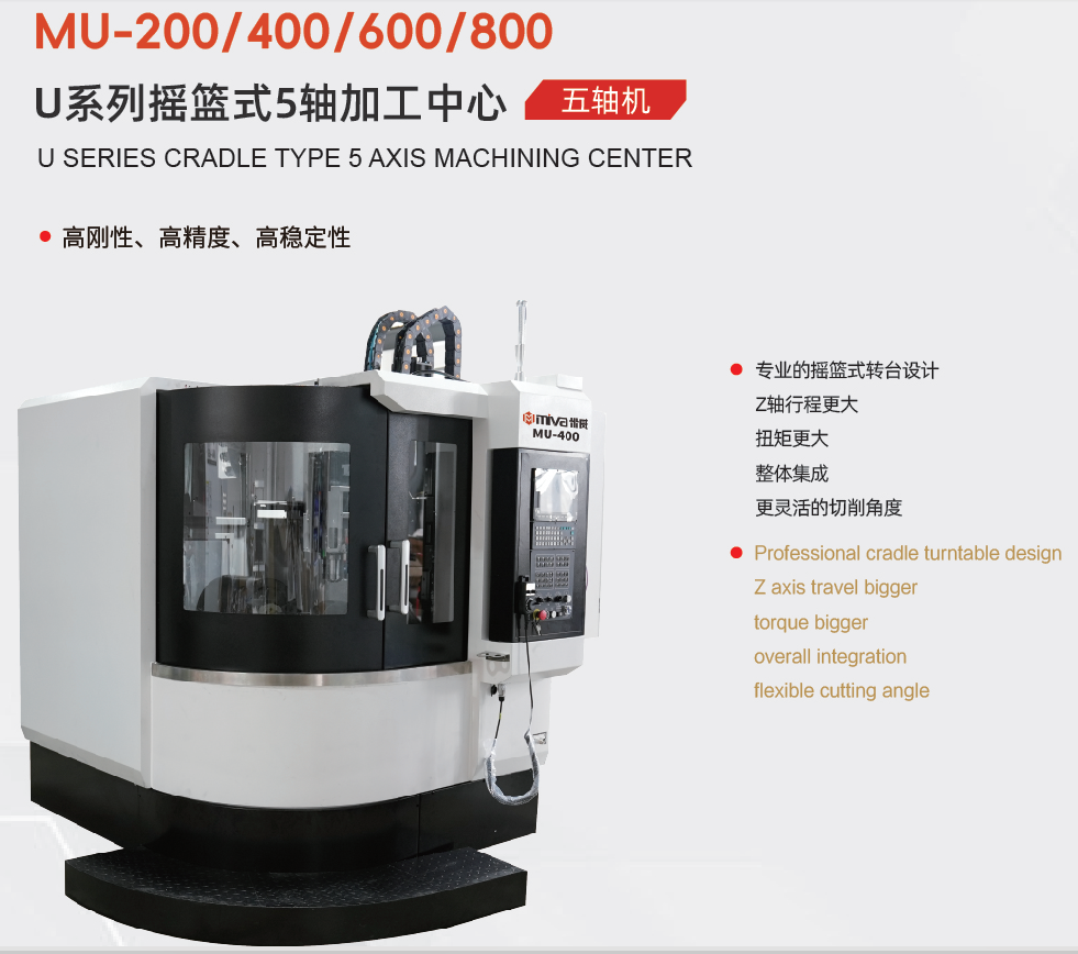 专业的摇篮式转台设计 z轴行程更大 扭矩更大 整体集成 更灵活的切削角度